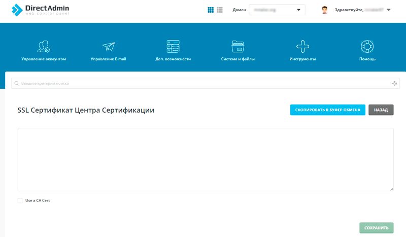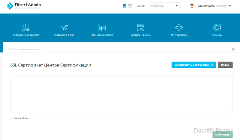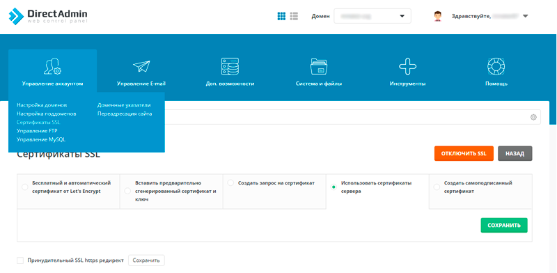 DirectAdmin - одна из самых старых и консервативных панелей управления хостингом. В своё время данная панель была одной из самых передовых по функционалу для пользователей, в том числе, одна из первых, кто внедрил управление сертификатами SSL из интерфейса панели. Установка SSL сертификата в DirectAdmin достаточно проста, но есть и моменты, которые не всегда понятны. Поэтому мы постараемся пошагово рассказать, как правильно установить сертификат.